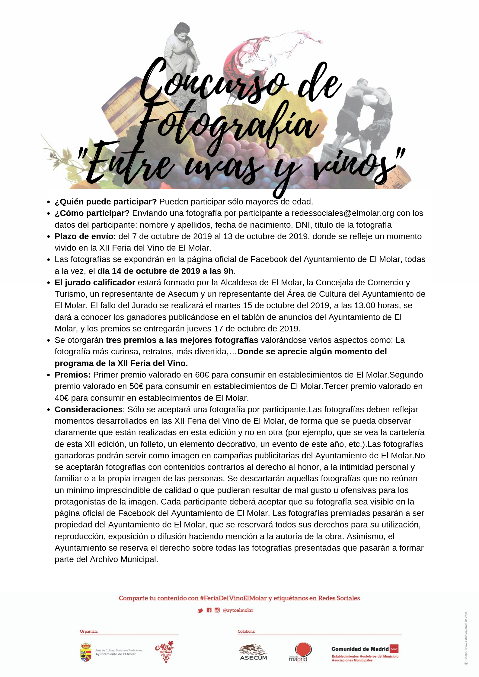 Una de las tradicionales actividades de la XII Feria del Vino de El Molar, que se celebrará del 4 al 6 de octubre de 2019, es su concurso de fotografía “Entre Uvas y Vinos”