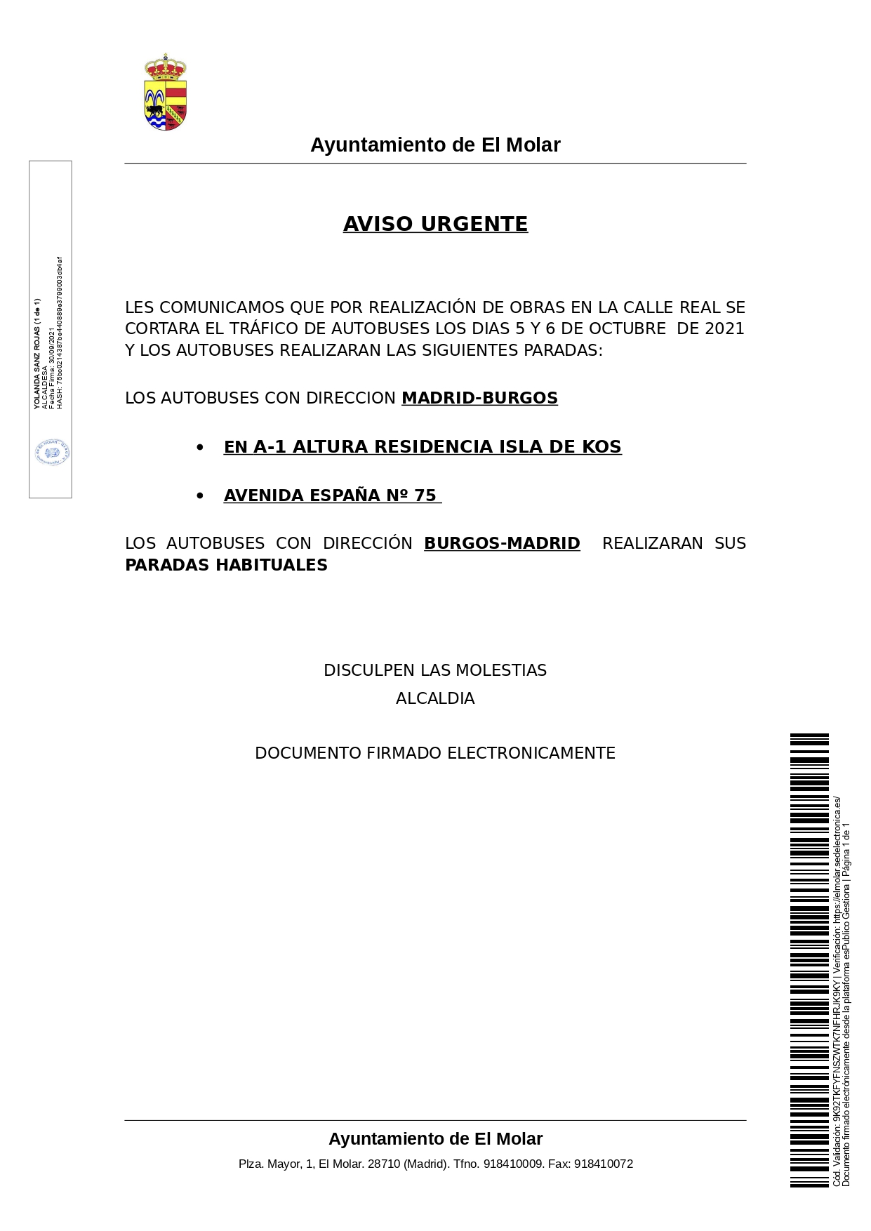 Corte de tráfico de autobuses para los días 5 y 6 de octubre