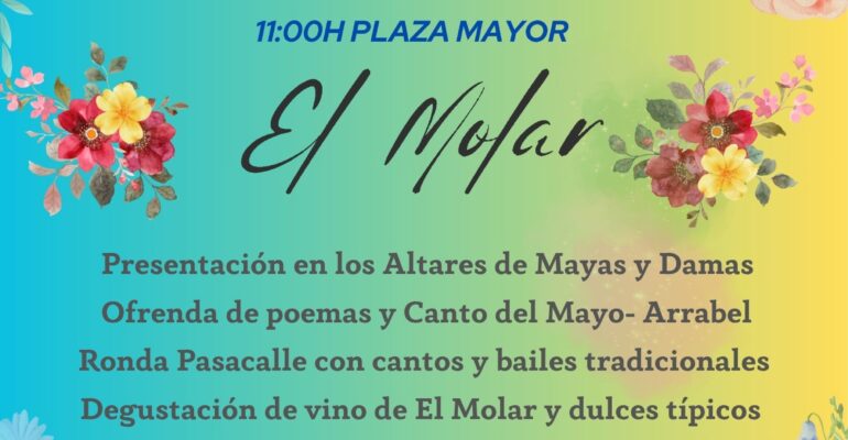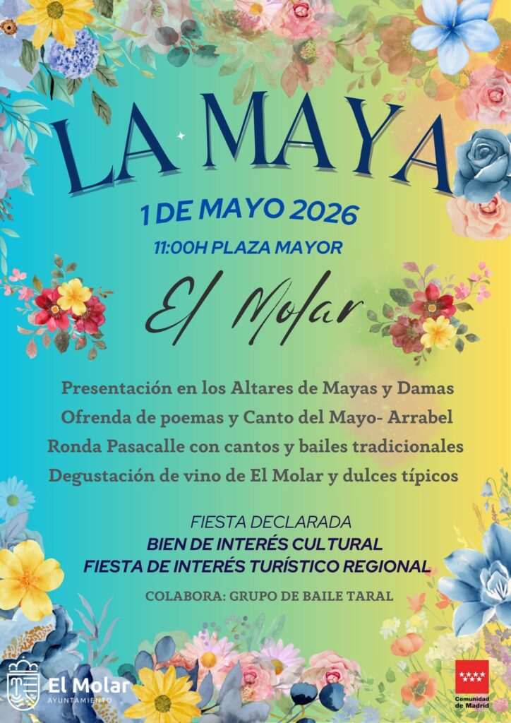 El Ayuntamiento de El Molar organiza, un año más, la celebración de La Maya, una de las tradiciones más representativas del municipio, que tendrá lugar el próximo 1 de mayo a las 11:00 horas en la Plaza Mayor.