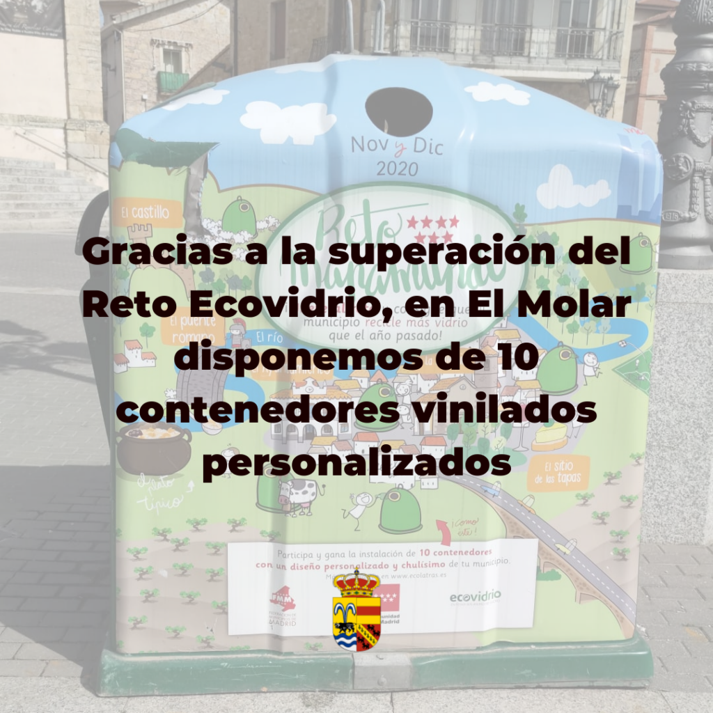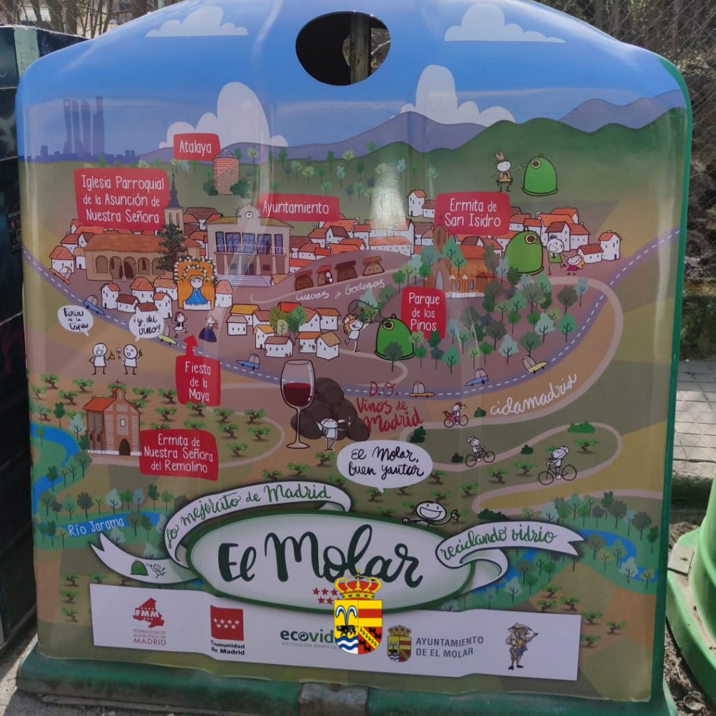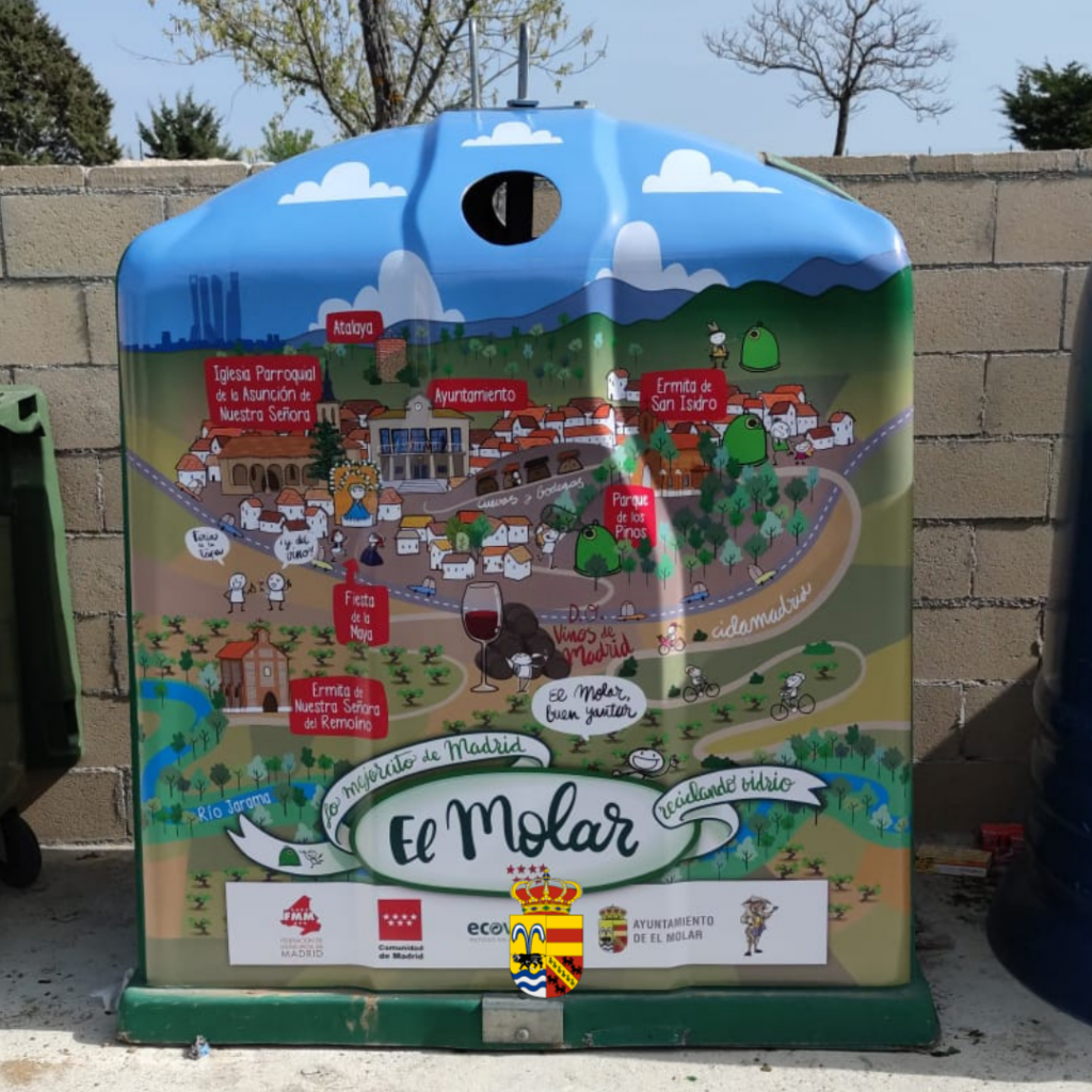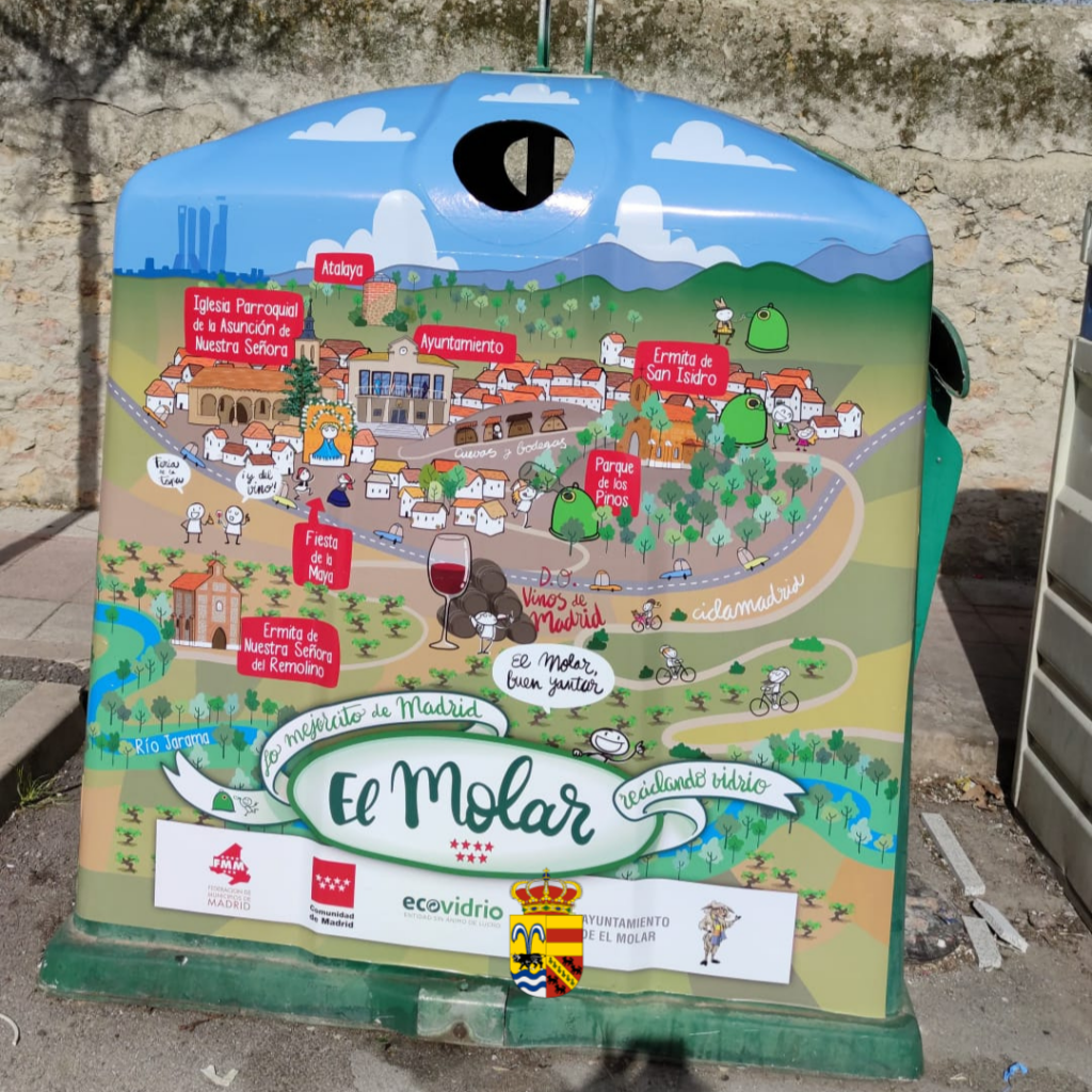 Tras superar el Reto Mapamundi el pasado mes de enero, donde se aumentó en un 10% el vidrio reciclado en noviembre y diciembre de 2020 respecto al año anterior, el municipio de El Molar ya posee sus diez contenedores vinilados con ilustraciones del municipio como premio.