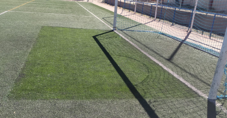 • Sustitución de un área de fútbol 11 de 7,32 x 3 metros aproximadamente aportando material, relleno y sustitución de punto de penalti y zonas de aspersores de riego.