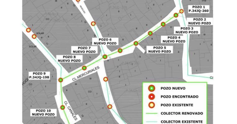 Esta actuación consiste en la renovación de la red de saneamiento de la Calle las Canales con San Roque y Mercuriales con la Calle del Viento.