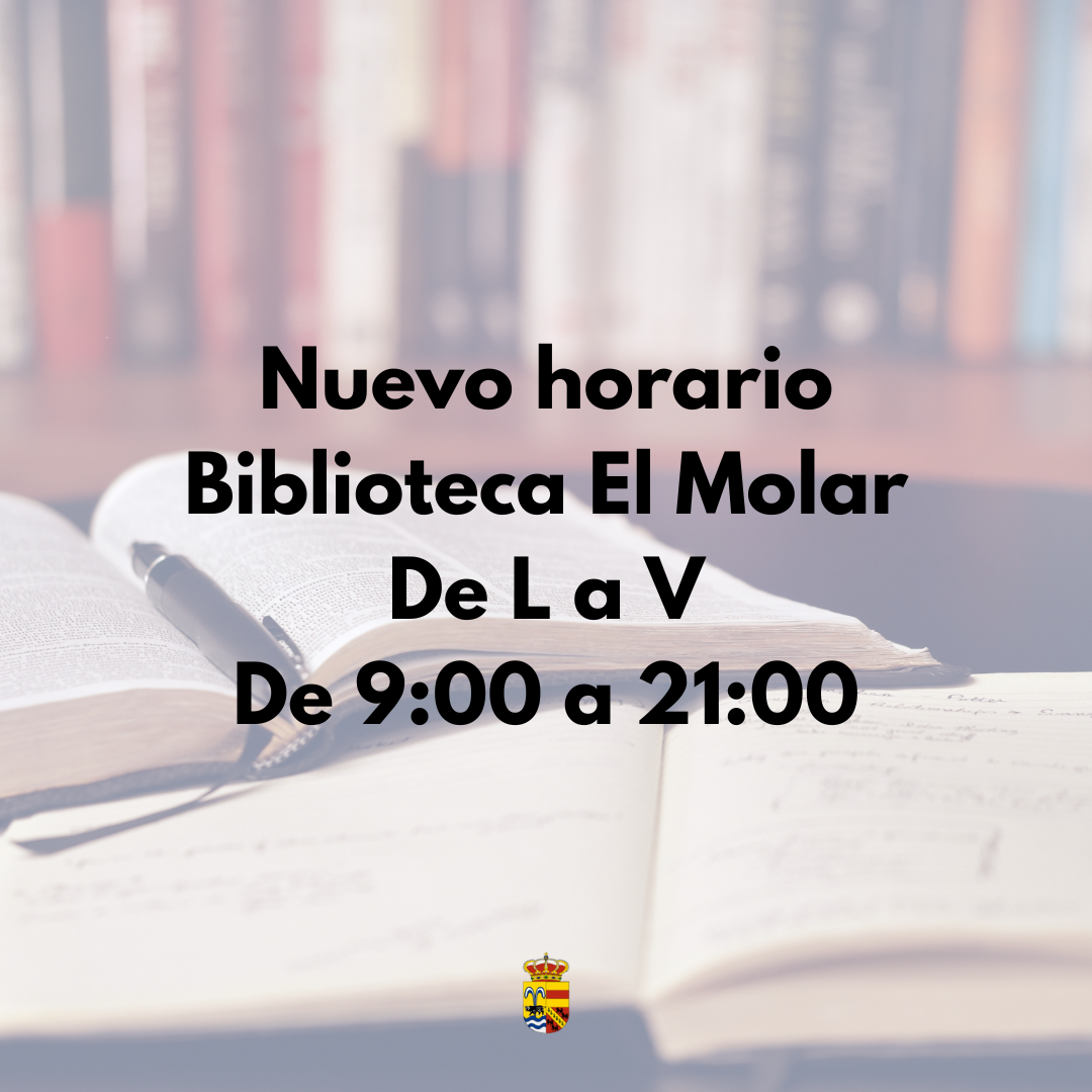 La Biblioteca de El Molar amplía el horario de apertura. Desde este lunes, estará abierta de lunes a viernes en horario ininterrumpido desde las 9:00 hasta las 21:00.