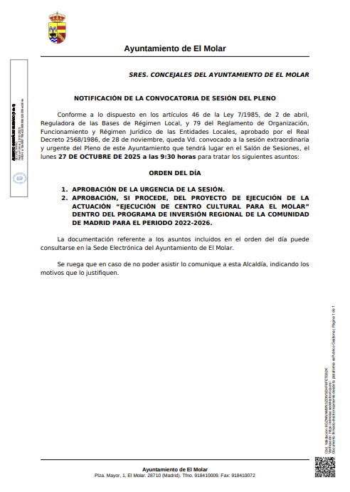 PLENO EXTRAORDINARIO 27 DE OCTUBRE