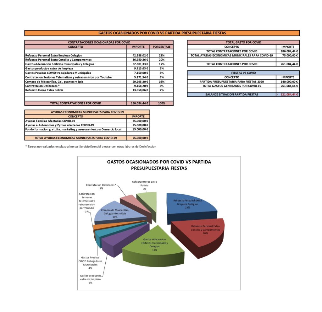 A esto habría que añadir el incremento de horas extra a la Policia Local, un servicio esencial durante esta grave crisis, que ha tenido que intensificar actuaciones, encaminadas a frenar los contagios y revertir esta situación.