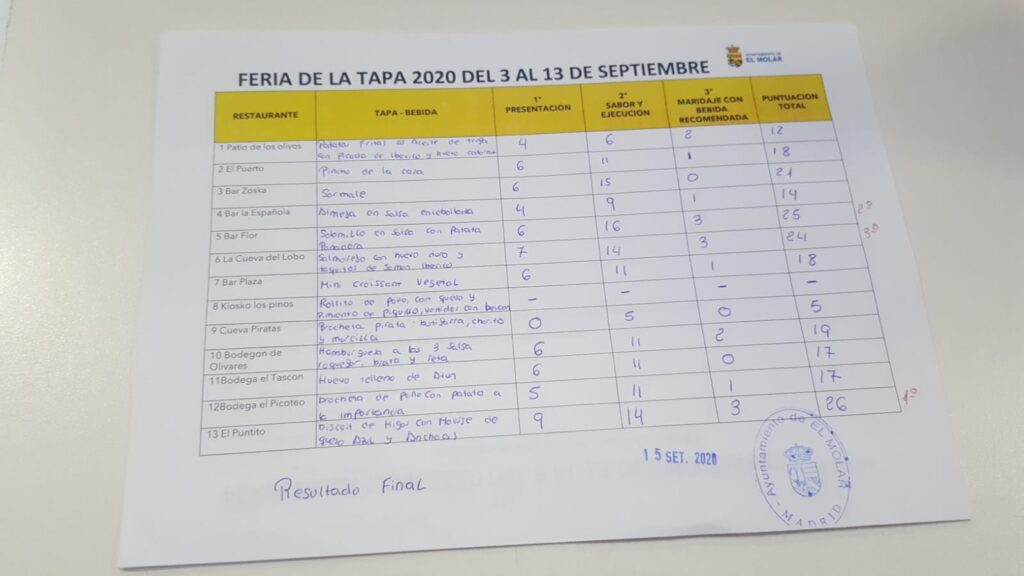 El jurado ha hecho públicas sus votaciones, siendo las tapas de los restaurantes siguientes los que han obtenido mayor puntuación: