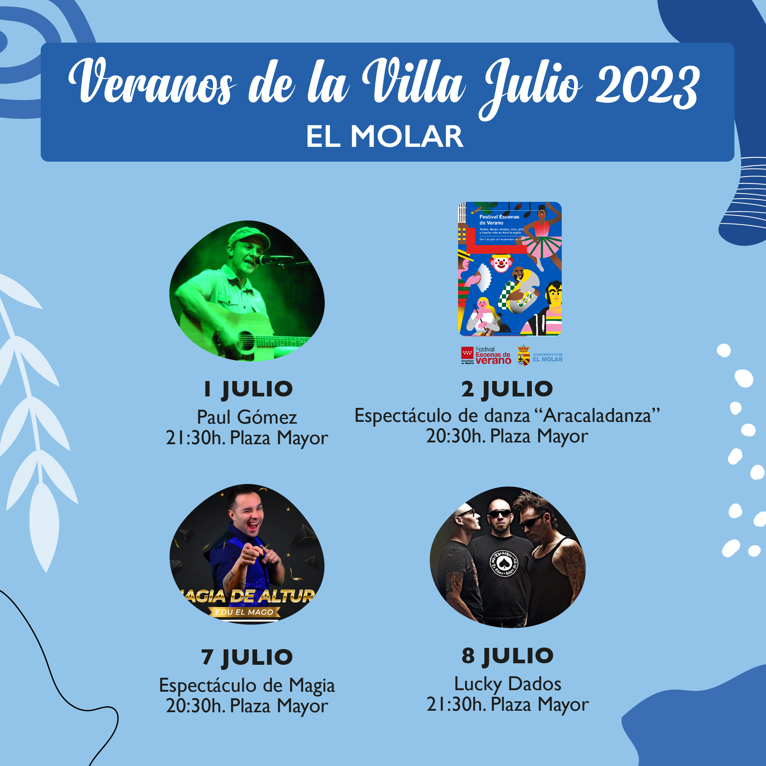 A partir del próximo 1 de julio podremos disfrutar de la programación de los Veranos de la Villa de El Molar. El programa del mes de julio puede consultarse aquí: